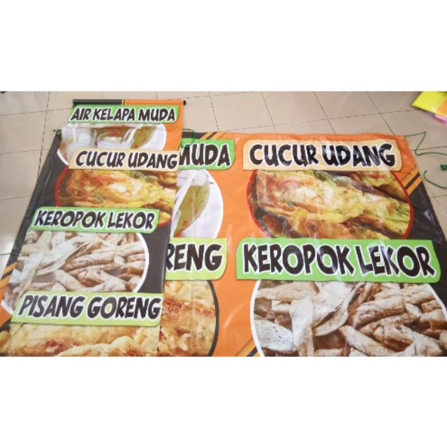 Banner goreng pisang *size 8kaki x 2kaki *sesuai untuk digantung pada canopy size 8x8 *warna solid, printing ecosolvent *eyelet 4penjuru utk memudahkan .